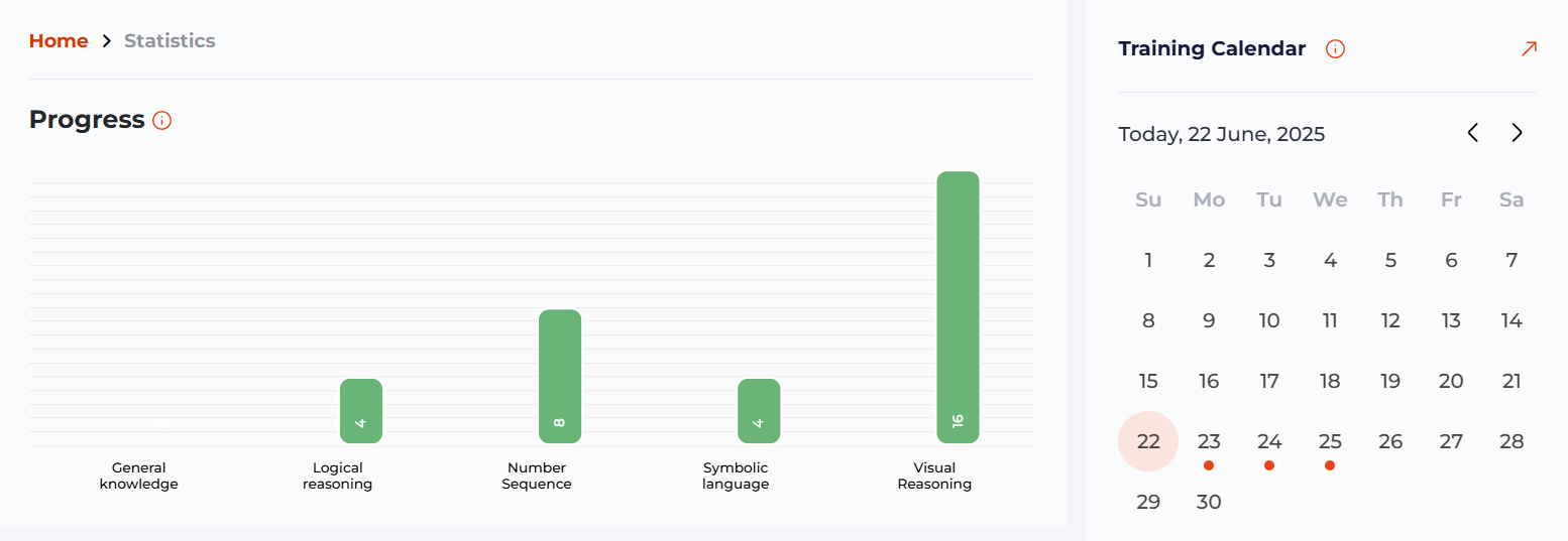 Monitor your progress with insights into how your brain skills evolve over time. You’ll see how consistent training improves your cognitive abilities.