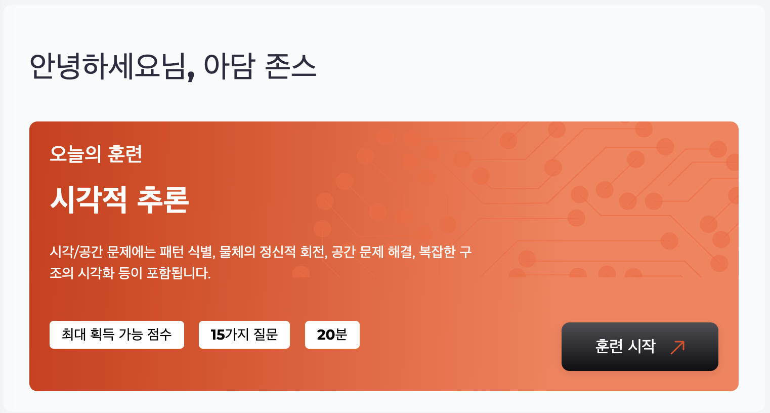 IQ 테스트 결과를 바탕으로, 귀하의 강점과 개선이 필요한 영역에 맞춘 완전 맞춤형 훈련 프로그램이 제공됩니다.