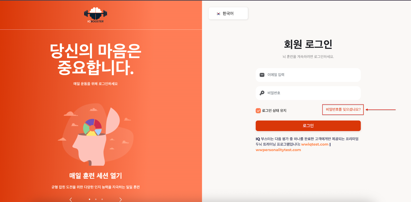 비밀번호를 잊으셨나요? 걱정하지 마세요 — IQ부스터 계정의 비밀번호는 간단하게 재설정하실 수 있습니다.