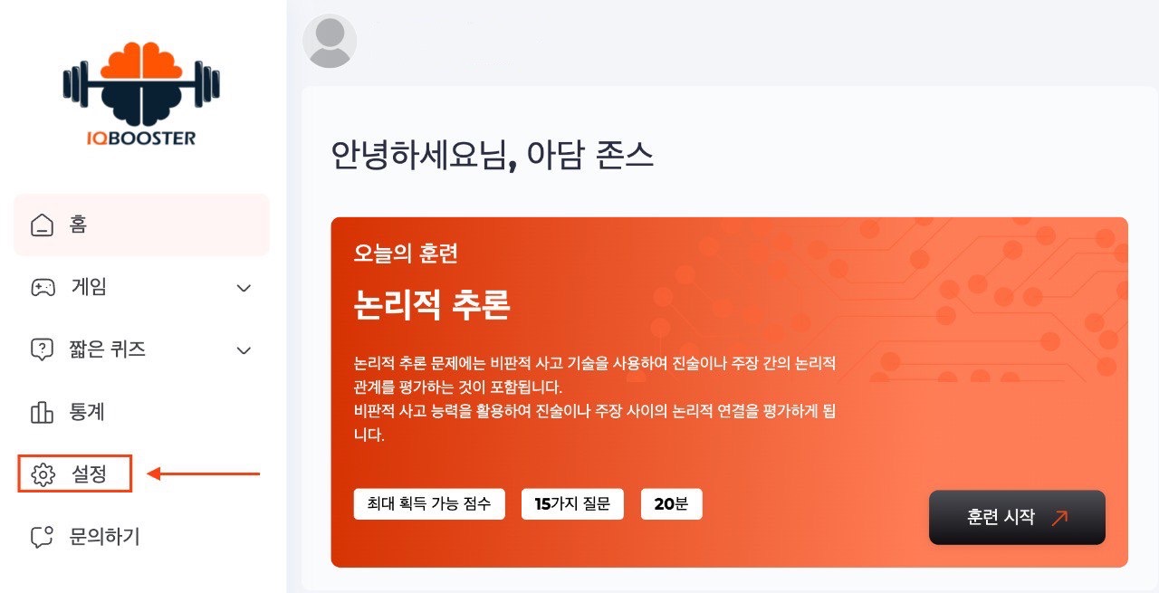 계정 관리를 위해 https://iqbooster.org 에 로그인하세요.